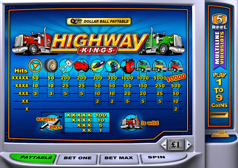 Highway King Slot is a 5-reel, 9-payline online slot inspired by a classic trucker theme. The highlight of the game is the powerful red truck symbol, which adds excitement and drives the action throughout the reels.
